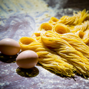 あべ養鶏場のブランド卵「下川(しもかわ)六〇(ろくまる)酵素卵(こうそらん)」と「北海道産小麦」を使用したオリジナルの卵麺は全て店内で製造。独自のW真空製法で「ツル」「モチ」とした初めての食感をお楽しみ頂けます。