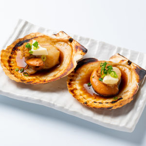 肉厚なホタテをニンニクバター醤油で浜焼きスタイル!
